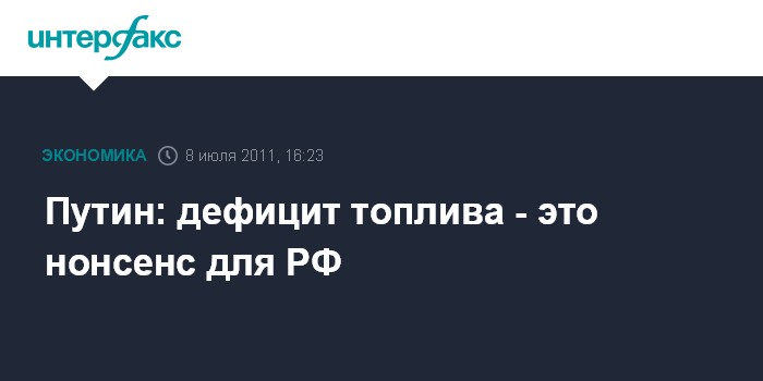 Кириши. 8 июля. ИНТЕРФАКС-АНИ - Дефицит топлива - это нонсенс для РФ, сообщил премьер-министр РФ Владимир Путин на совещании в среду.