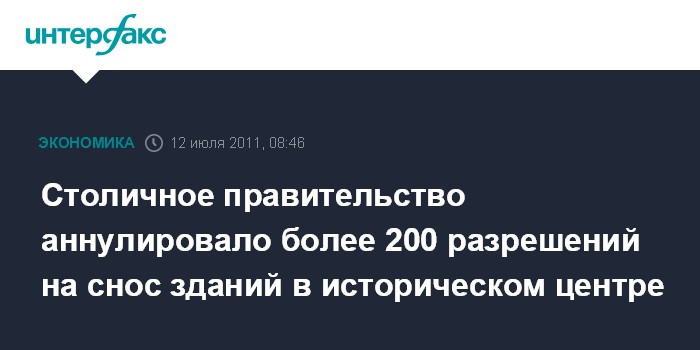 Итогом проведенной департаментом культурного наследия Москвы (Москомнаследие) масштабной ревизии, стала "отмена всех 209 разрешений на снос зданий, ранее выданных действующей при мэрии комиссии по вопросам сохранения зданий в исторически сложившихся районах Москвы", сообщил изданию советник главы Москомнаследия Николай Переслегин.