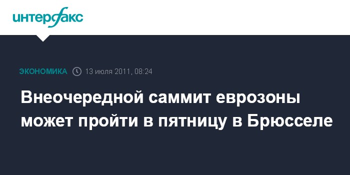 Брюссель. 13 июля. INTERFAX.RU - Внеочередной саммит стран зоны евро, посвященный греческому кризису, а также экономическому положению в Испании и Италии, может состояться в Брюсселе в пятницу, сообщил французский телеканал "Франс 24".