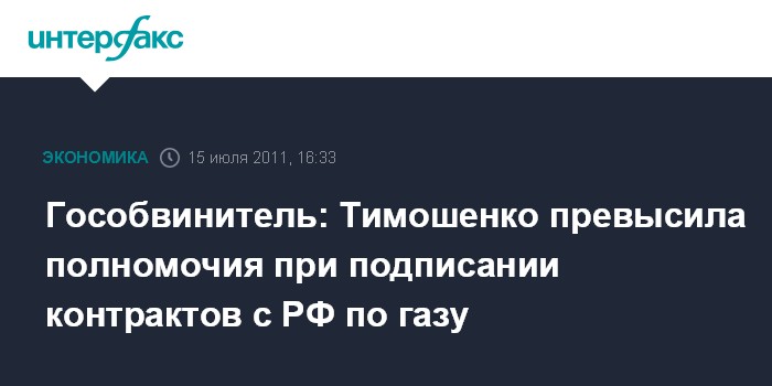 "Тимошенко, будучи премьером, не имела права единолично выдавать директивы на подписание газовых контрактов. Несмотря на этом премьер-министр Тимошенко, превышая власть и полномочия, … дала указание Дубине (Олег Дубина - тогдашний глава "Нафтогаза") по поводу их подписания", - утверждала гособвинитель.
