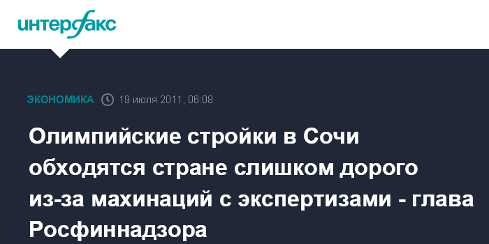 Олимпийские стройки в Сочи обходятся стране слишком дорого из-за махинаций с экспертизами - глава Росфиннадзора