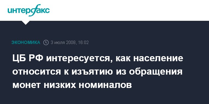 Москва. 3 июля. ИНТЕРФАКС-АФИ - Банк России хочет выяснить, как население РФ относится к изъятию из обращения монет номиналом 1 и 5 копеек, сообщил директор департамента наличного денежного обращения ЦБ РФ Александр Юров на конференции "Наличное денежное обращение: модели, стандарты, тенденции".
