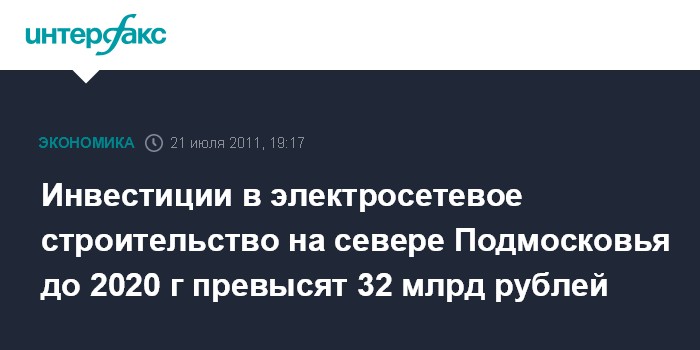 Инвестиции в электросетевое строительство на севере Подмосковья до 2020 г превысят 32 млрд рублей