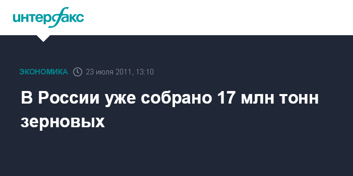 В России уже собрано 17 млн тонн зерновых