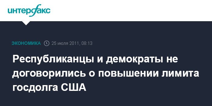 Вашингтон. 25 июля. INTERFAX.RU - Бюджетные переговоры республиканцев и демократов, призванные предотвратить стремительно приближающийся дефолт США по своим обязательствам, на выходных вновь не принесли результата, несмотря на растущее напряжение на финансовом рынке.