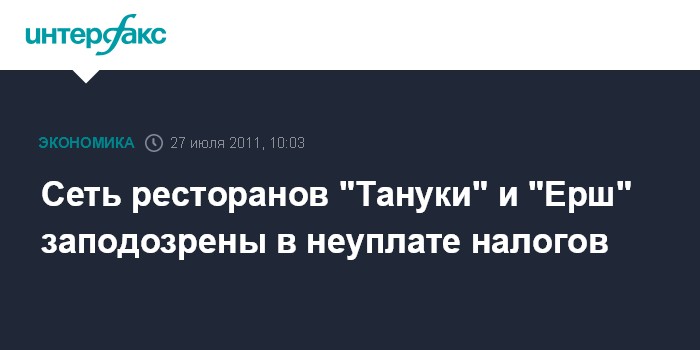 Сеть ресторанов "Тануки" и "Ерш" заподозрены в неуплате налогов