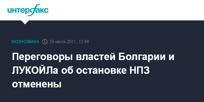 София. 28 июля. INTERFAX.RU - Переговоры властей Болгарии с руководством НК "ЛУКОЙЛ" о ситуации с возможной остановкой НПЗ "ЛУКОЙЛа" в Бургасе отменились, сообщает агентство Bloomberg со ссылкой на министерство финансов Болгарии.