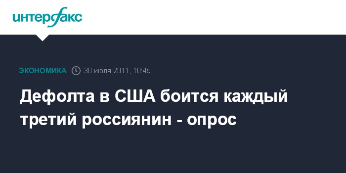 Москва. 30 июля. INTERFAX.RU - Негативных последствий возможного американского дефолта опасается почти каждый третий (31%) экономически активный житель России, однако большую часть наших соотечественников такой вариант развития событий не беспокоит.