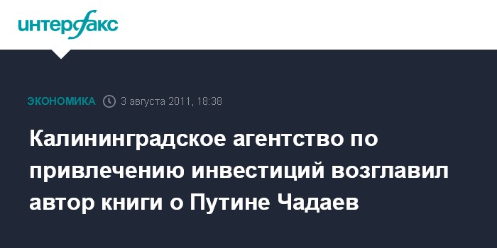 Калининградское агентство по привлечению инвестиций возглавил автор книги о Путине Чадаев