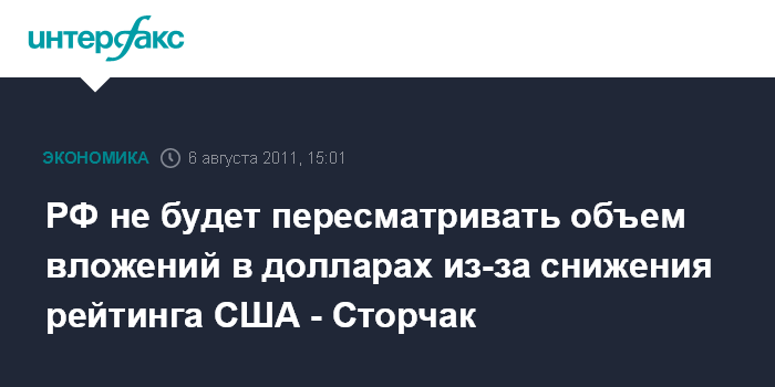 РФ не будет пересматривать объем вложений в долларах из-за снижения рейтинга США - Сторчак