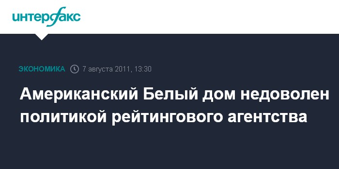 Лондон 7 августа. INTERFAX.RU - Главный экономический советник Белого дома Джин Сперлинг подверг критике действия рейтингового агентства Standard and Poor's, снизившего на один пункт кредитный рейтинг США, сообщает Би-Би-Си. Наивысший кредитный рейтинг ААА, который до сих пор был у США, снижен агентством Standard and Poor's до АА+ из-за опасения роста бюджетного дефицита.