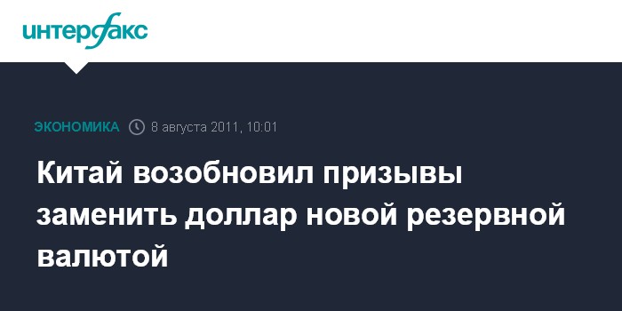 Пекин. 8 августа. INTERFAX.RU - Китай, крупнейший кредитор США, обрушился с резкой критикой на американские власти в связи с их неспособностью предотвратить падение кредитного рейтинга и выразил уверенность, что миру нужна другая резервная валюта, способная заменить доллар, передает BBC.