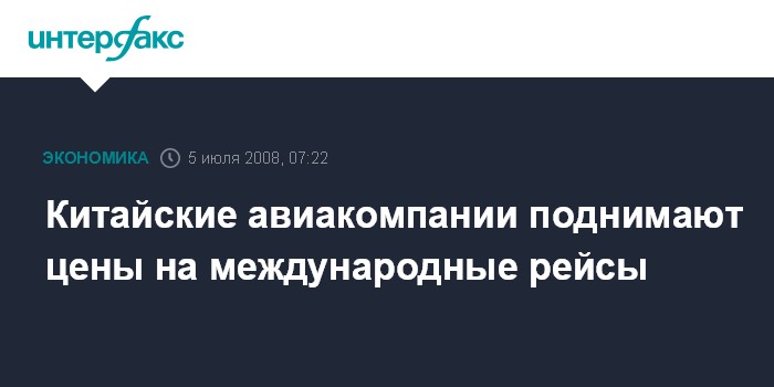 Пекин. 5 июля. ИНТЕРФАКС-КИТАЙ - Китайские Южная, Восточная авиакомпании и Air China c 10 июля повышают стоимость билетов на международные авиарейсы до 300 юаней ($44) в качестве компенсации за дорожающее топливо, сообщила в субботу газета "Ухань ваньбао".