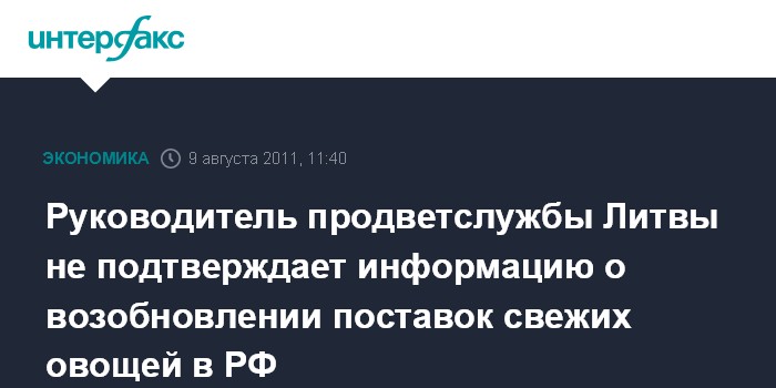 Вильнюс. 9 августа. INTERFAX.RU - У Литвы пока нет официальной информации из России о решении возобновить импорт свежих овощей из Литвы, Латвии и Эстонии, заявил BNS руководитель Государственной продовольственно-ветеринарной службы Йонас Милюс.
