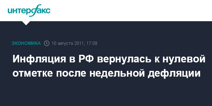 Москва. 10 августа. INTERFAX.RU - Потребительские цены в России со 2 по 8 августа 2011 года не изменились, сообщил в среду Росстат. За предшествующую неделю цены снизились на 0,1% (это была первая дефляция за 2 года), а до этого три недели подряд инфляция была нулевой.