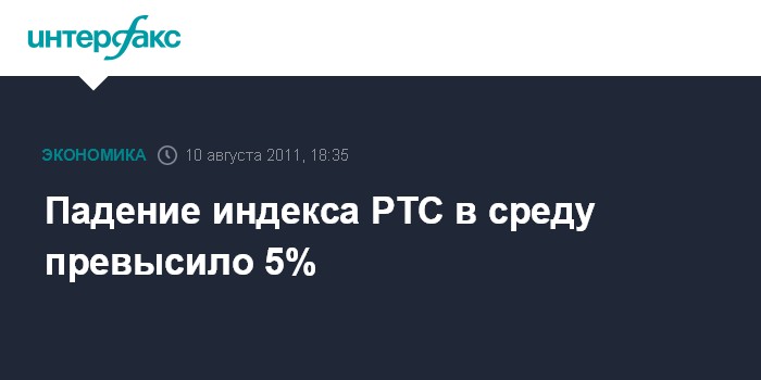 Москва. 10 августа. INTERFAX.RU - Индекс РТС, один из основных российских фондовых индикаторов, к вечеру среды упал более чем на 5% вслед за очередным обвалом на рынке США после локального отскока.