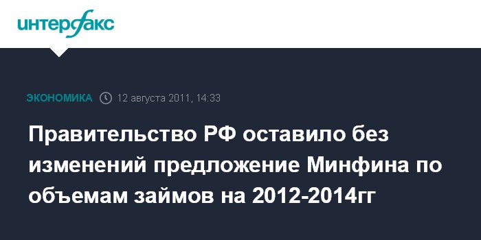 Москва. 12 августа. INTERFAX.RU - Президиум правительства РФ на заседании в четверг оставил без изменения предложение Минфина в рамках основных направлений долговой политики РФ на 2012-14 годы по объемам заимствований как на внутреннем, так и на внешнем рынке, сообщил журналистам замминистра финансов РФ Сергей Сторчак.