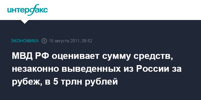 МВД РФ оценивает сумму средств, незаконно выведенных из России за рубеж, в 5 трлн рублей