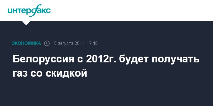 Москва. 15 августа. INTERFAX.RU - Белоруссия со следующего года будет получать российский газ со скидкой с учетом ее вхождения в Таможенный союз, заявил премьер-министр РФ Владимир Путин по итогам встречи со своим белорусским коллегой Михаилом Мясниковичем.