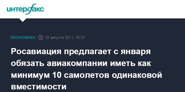 Он сообщил, что предполагается ввести требования для авиакомпаний по минимальному количеству самолетов одинаковой вместимости: с 1 января 2012 г. - 10 воздушных судов, с 1 января 2013 г. - увеличить эти требования до 20 воздушных судов. "В будущем эта цифра может быть пересмотрена", - сказал Нерадько.