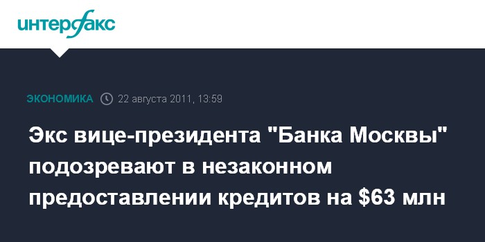 Экс вице-президента "Банка Москвы" подозревают в незаконном предоставлении кредитов на $63 млн