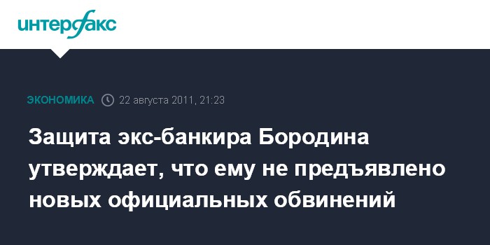 Москва. 22 августа. INTERFAX.RU - Адвокаты бывшего главы Банка Москвы Андрея Бородина заявляют, что их клиенту не предъявляли официальных обвинений, касающихся продажи акций Эстонского кредитного банка.