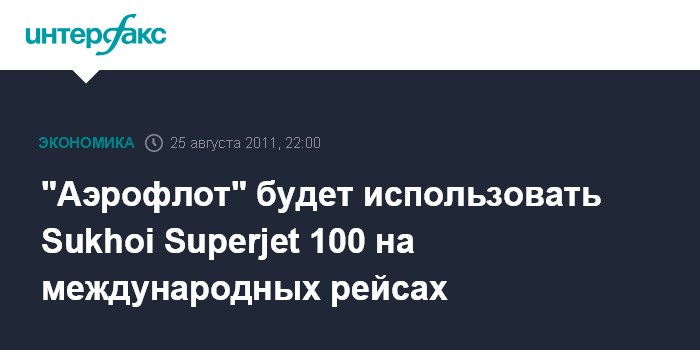 "Аэрофлот" является одним из крупнейших заказчиков ближнемагистрального самолета, созданного компанией "Гражданские самолеты Сухого" совместно с зарубежными партнерами. Первый коммерческий рейс на новом самолете авиаперевозчик выполнил 16 июня этого года. В ближайшие годы главная российская авиакомпания должна получить 30 самолетов этого типа. "Аэрофлот" также владеет опционом на приобретение еще 15 таких машин.
