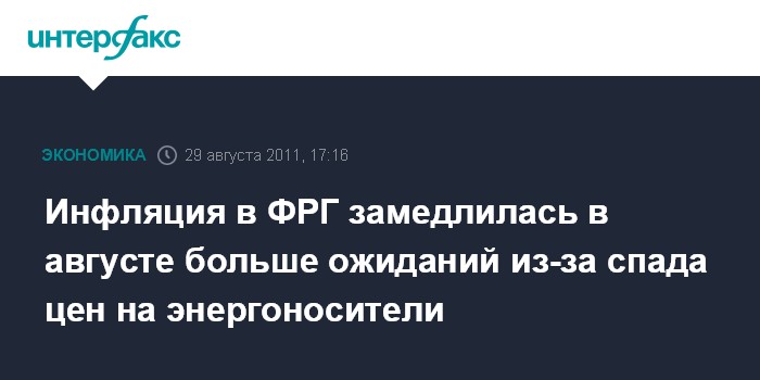 Экономисты, опрошенные Bloomberg, ожидали, что темпы инфляции в ФРГ упадут с июльского уровня в 2,6% всего до 2,5% в годовом исчислении.