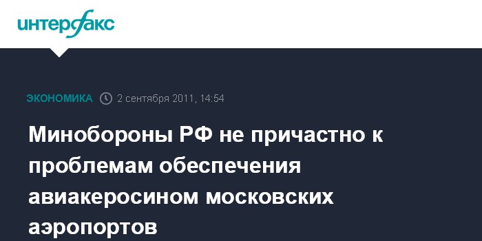 Москва. 2 сентября. INTERFAX.RU - Минобороны России не имеет отношения к кризисной ситуации, сложившейся с поставками авиационного керосина в московском авиаузле, заявил в пятницу "Интерфаксу-АВН представитель управлении пресс-службы и информации военного ведомства майор Владимир Дробышевский.