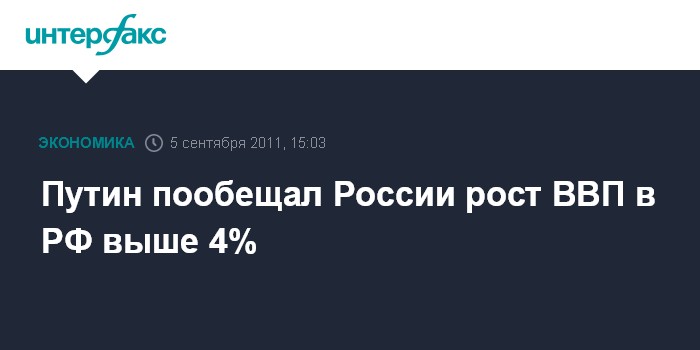 "По нашим оценкам, рост ВВП в этом году будет выше 4%. Это значит, что уже к началу 2012 года наша экономика в полном объеме компенсирует кризисный спад", - заявил Путин в понедельник на региональной конференции "Единой России".