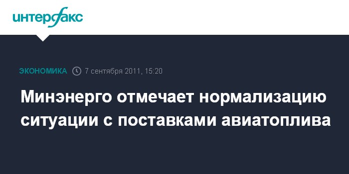 Москва. 7 сентября. INTERFAX.RU - Министерство энергетики РФ отмечает нормализацию ситуации с поставками авиатоплива в аэропорты, сообщил министр энергетики Сергей Шматко, выступая на президиуме правительства.