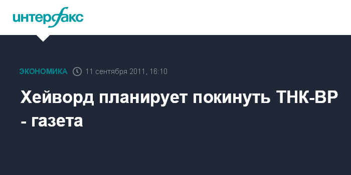 Лондон. 11 сентября. INTERFAX.RU - Бывший руководитель британской нефтяной компании BP Тони Хейворд собирается выйти из совета директоров ТНК-ВР, сообщает в воскресенье газета The Telegraph. Т.Хейворд планирует сосредоточиться на руководстве собственной компанией Vallares, созданной для покупки долей в нефтегазовых проектах, и, по словам источников издания, считает, что у него не останется времени на работу в ТНК-ВР. По данным газеты, официально о своем решении он может сообщить в ближайшие недели.