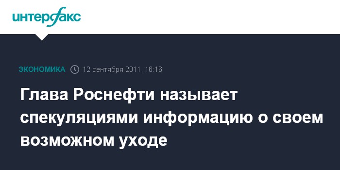Москва. 12 сентября. INTERFAX.RU - Президент НК "Роснефть" (РТС: ROSN) Эдуард Худайнатов назвал спекуляцией информацию о своем возможном уходе.