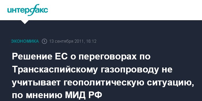 Решение ЕС о переговорах по Транскаспийскому газопроводу не учитывает геополитическую ситуацию, по мнению МИД РФ