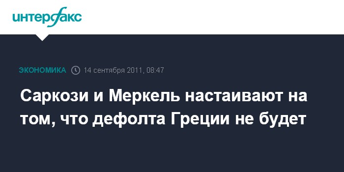 Саркози и Меркель настаивают на том, что дефолта Греции не будет