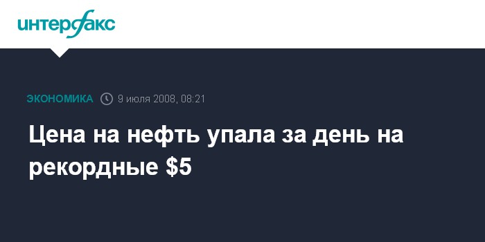 Москва. 9 июля. INTERFAX.RU - Цена фьючерсов на нефть рухнула в Нью-Йорке за один день на $5,33, что является рекордом с 1991 года.