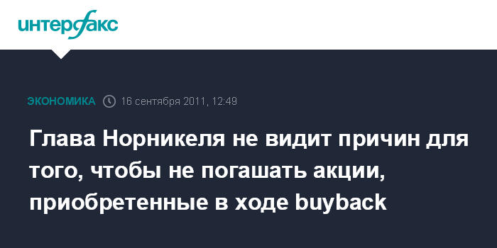 Глава Норникеля не видит причин для того, чтобы не погашать акции, приобретенные в ходе buyback