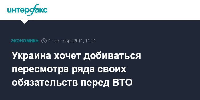 Украина хочет добиваться пересмотра ряда своих обязательств перед ВТО