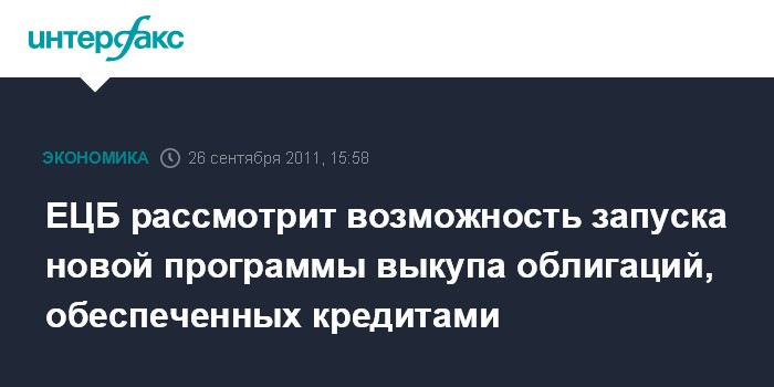 ЕЦБ рассмотрит возможность запуска новой программы выкупа облигаций, обеспеченных кредитами