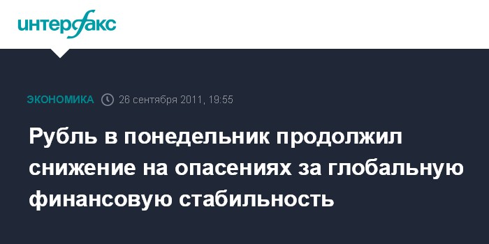 Рубль в понедельник продолжил снижение на опасениях за глобальную финансовую стабильность