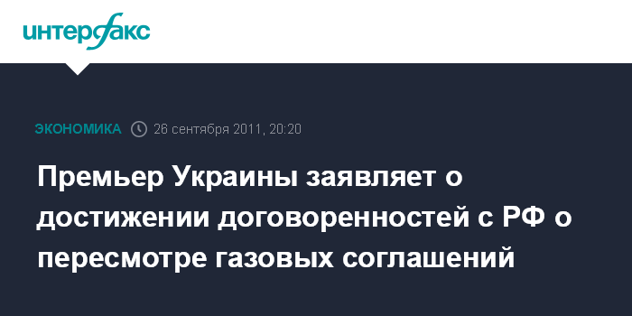 Киев. 26 сентября. INTERFAX.RU - Украина и Россия договорились о пересмотре газовых соглашений 2009 года, заявил премьер-министр Украины Николай Азаров.