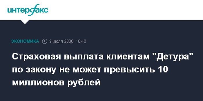 Страховая выплата клиентам "Детура" по закону не может превысить 10 миллионов рублей
