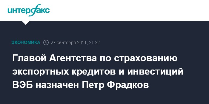 Главой Агентства по страхованию экспортных кредитов и инвестиций ВЭБ назначен Петр Фрадков