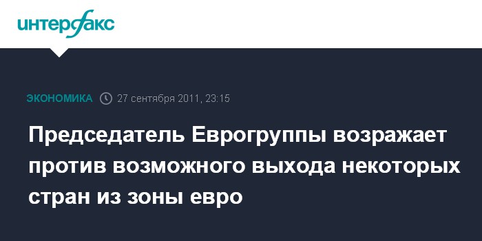 Брюссель. 27 сентября. ИНТЕРФАКС - О своем "горячем несогласии" с добровольным или вынужденным выходом из зоны евро одной или нескольких стран заявил во вторник в ходе дебатов на пленарном заседании Европарламента в Страсбурге председатель Еврогруппы и премьер-министр Люксембурга Жан-Клод Юнкер.