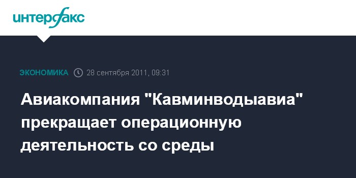 Москва. 28 сентября. INTERFAX.RU - Авиакомпания "Кавминводыавиа" прекращает свою операционную деятельность со среды, говорится в сообщении Росавиации.
