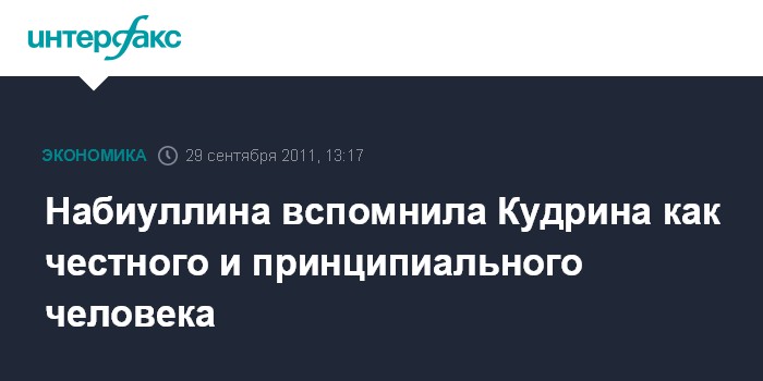 Москва. 29 сентября. INTERFAX.RU - Глава Минэкономразвития Эльвира Набиуллина отмечает честность и принципиальность бывшего вице-премьера, министра финансов Алексея Кудрина. Она назвала его очень высоким профессионалом, который честно всегда защищал свою позицию, был принципиальным.
