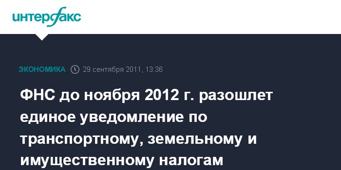 ФНС до ноября 2012 г. разошлет единое уведомление по транспортному, земельному и имущественному налогам