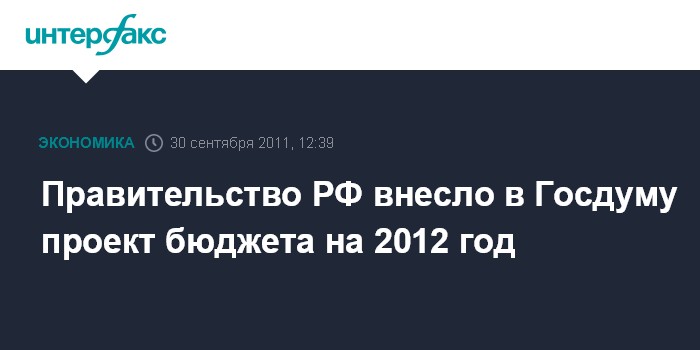 Москва. 30 сентября. INTERFAX.RU - Правительство РФ внесло в Госдуму проект бюджета на 2012 год и плановый период 2013-2014 годов, передал корреспондент агентства "Интерфакс-АФИ" из Госдумы.