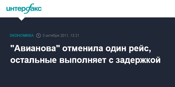 Рейсы авиакомпании "Авианова" задерживаются, но пока вылетают, свидетельствует информация на сайте аэропорта "Шереметьево". Рейс в Курган, который по расписанию должен был отправиться в 01:40 мск, вылетел в 7:37 утра, в Астрахань - в 8:40 (по расписанию - 5:30). Уфимский рейс задержался менее чем на полтора часа и вылетел в 6:59. Всего на 45 минут позже расписания отправился рейс в Калининград, а пассажиры рейса в Сочи ждали вылета три с половиной часа. А вот в Ульяновск самолет "Авиановы" должен вылететь лишь в 18:00 - на 6 часов 20 минут позже, чем по расписанию.