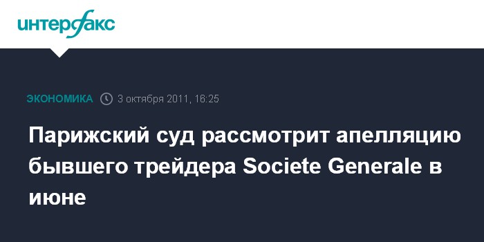 Парижский суд рассмотрит апелляцию бывшего трейдера Societe Generale в июне